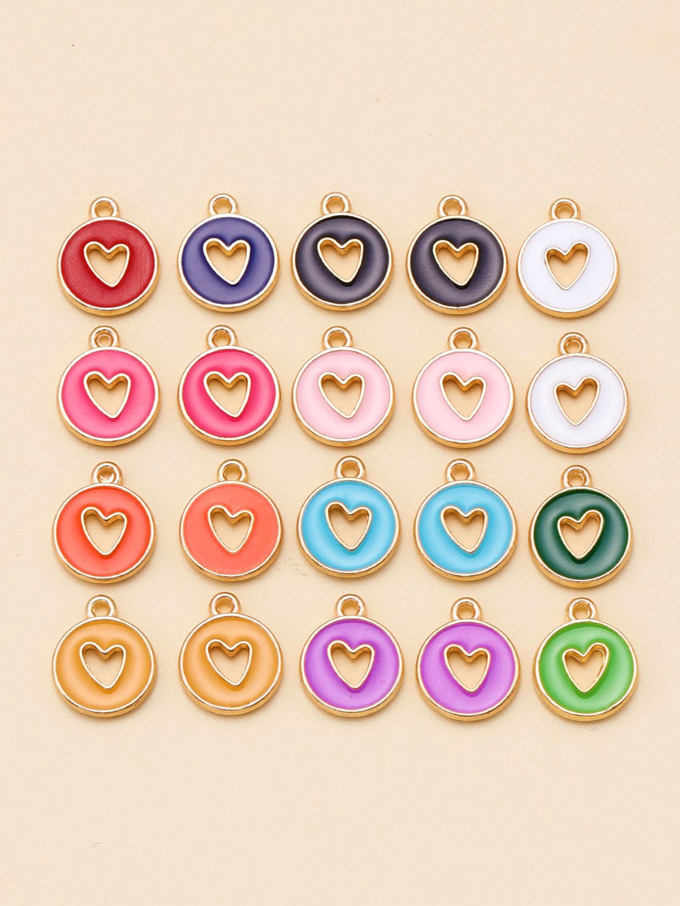 Random Mix-Color 20pcs Fashionable Double-Sided Drip Oil Heart & Round Shaped Zinc Alloy Pendant, DIY Supplies For Making Women's Earrings, Necklaces, Bracelets, Wholesale Valentines