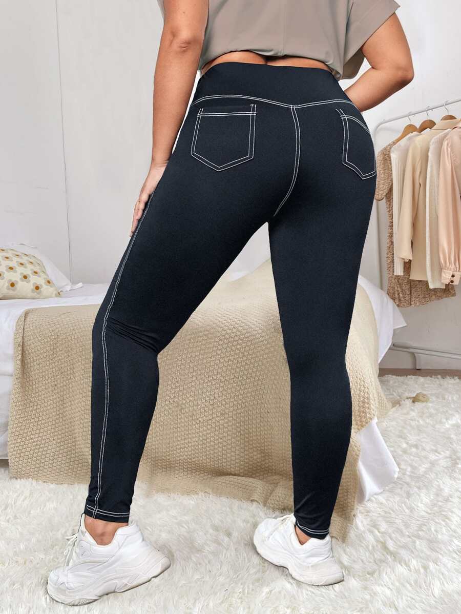 SHEIN EZwear Plus Top-stitching Skinny Trousers