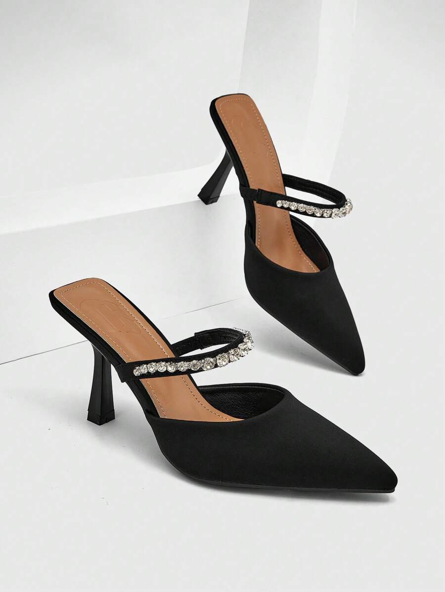 CUCCOO CHICEST Woman Shoes Rhinestone Decor Point Toe Pyramid Heeled Pumps Fashion Sexy Black Pumps For Summer Graduation Heels Prom Heels Vacation Shoes Summer Elegant Heels Back To School Shoes College Student Shoes Spring Shoes Spring Break Easter For Christmas Elegant Shoes