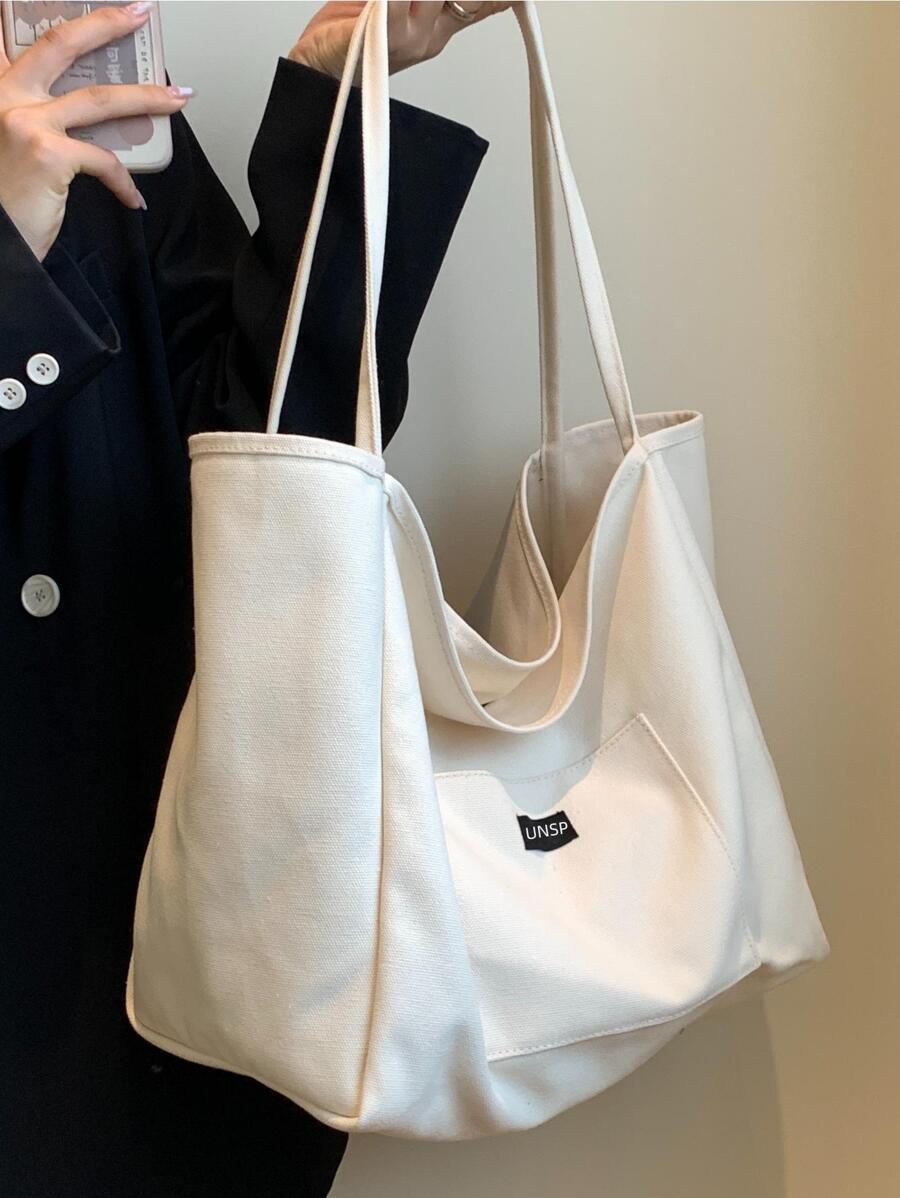 Women's Solid Colour Fashion Canvas Shopping Bag Shoulder Tote Bag Student Book Bag Large Capacity