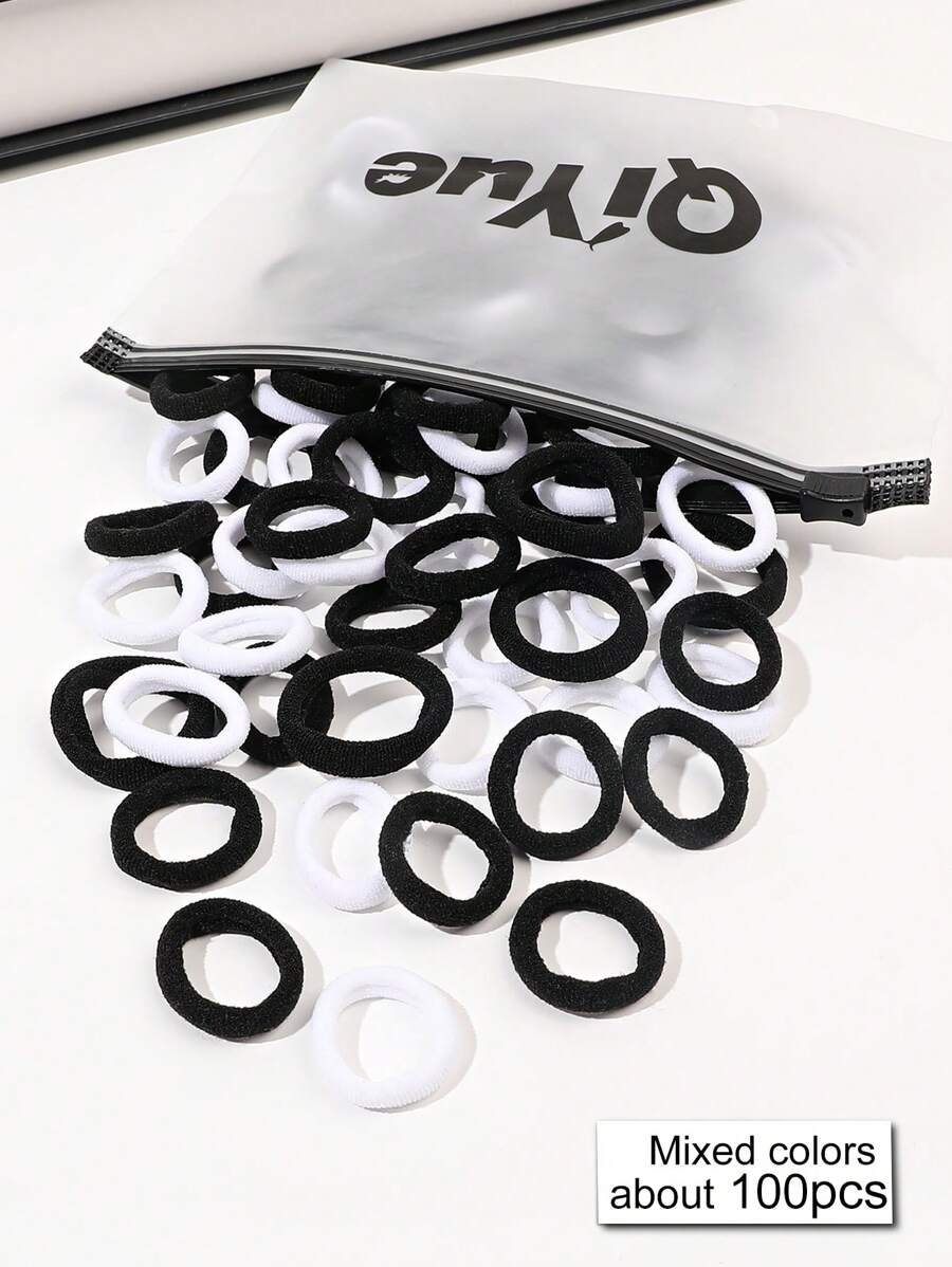 50pcs/100pcs Mini Black & White Elastic Hair Ties, Simple Solid Color Hair Accessories For Women,Ponytail,Hair Elastics,Hair Rope Ponytail Holders