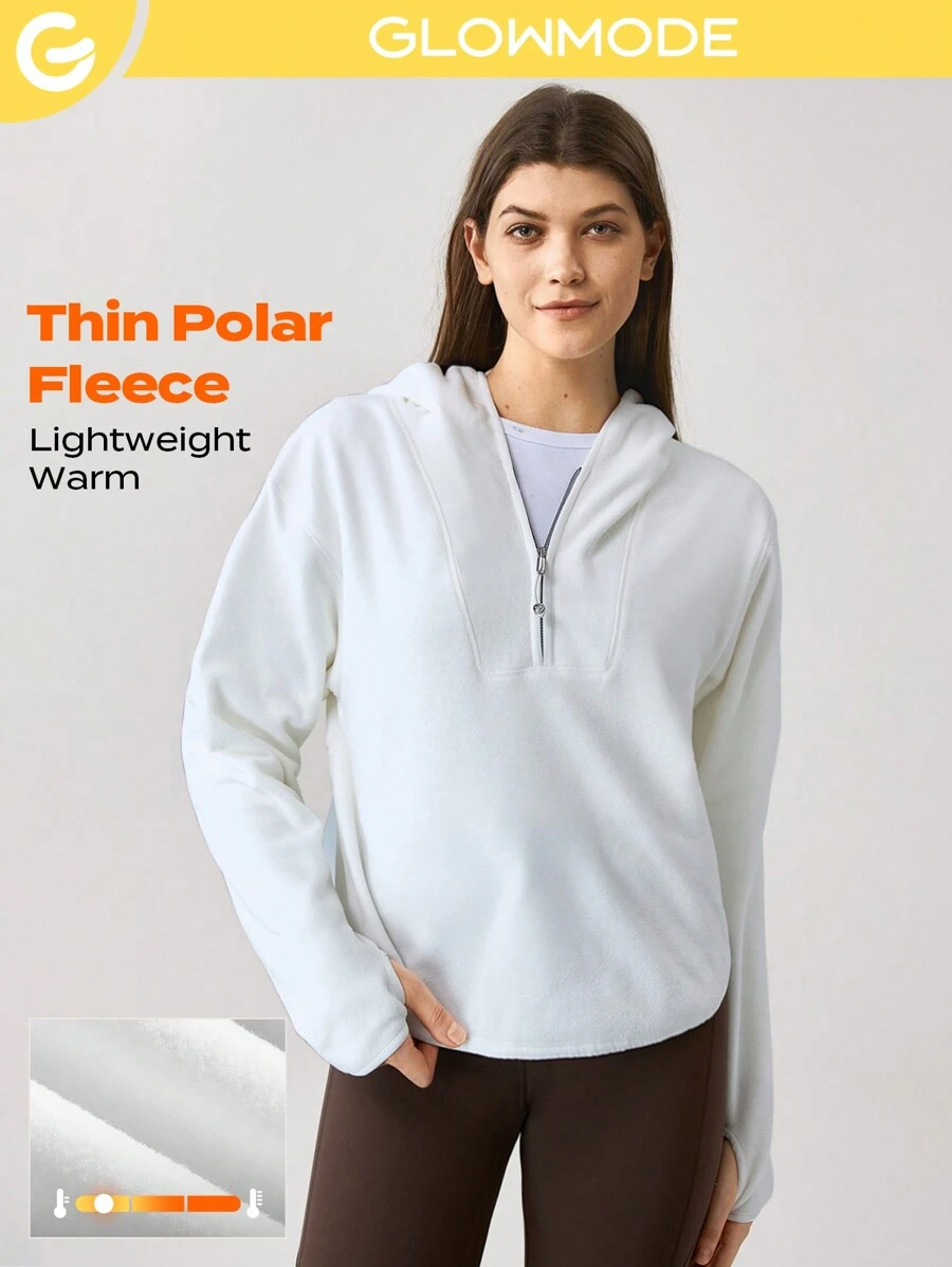 GLOWMODE Thin Polar Fleece Motivate Half-Zip Relaxed Hip Length Pullover Hoodie Comfortable Warm Fall Winter