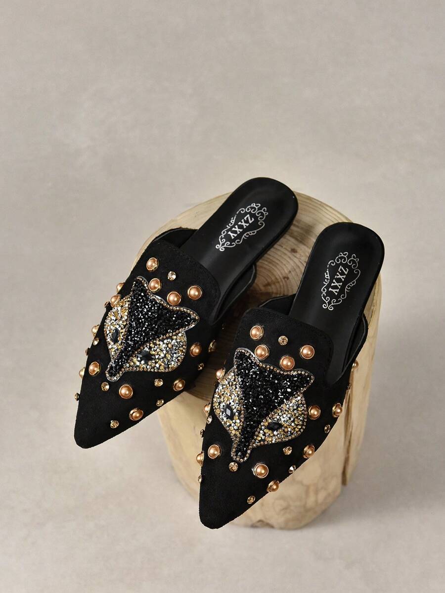 2025 Autumn 2023 New Arrivals Women's Cute Rhinestone-Like Fox Animal Decor Fashionable Casual Flat Mules