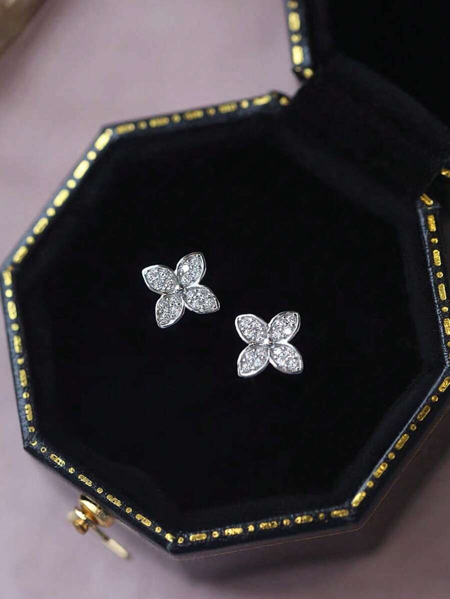 BALMORA 1 Pair 925 Sterling Silver Vintage Cute Elegant Small Zirconia Flower Stud Earrings, Fashion Versatile, Suitable For Daily Wear, Also Can Be Party Accessories Or Gifts