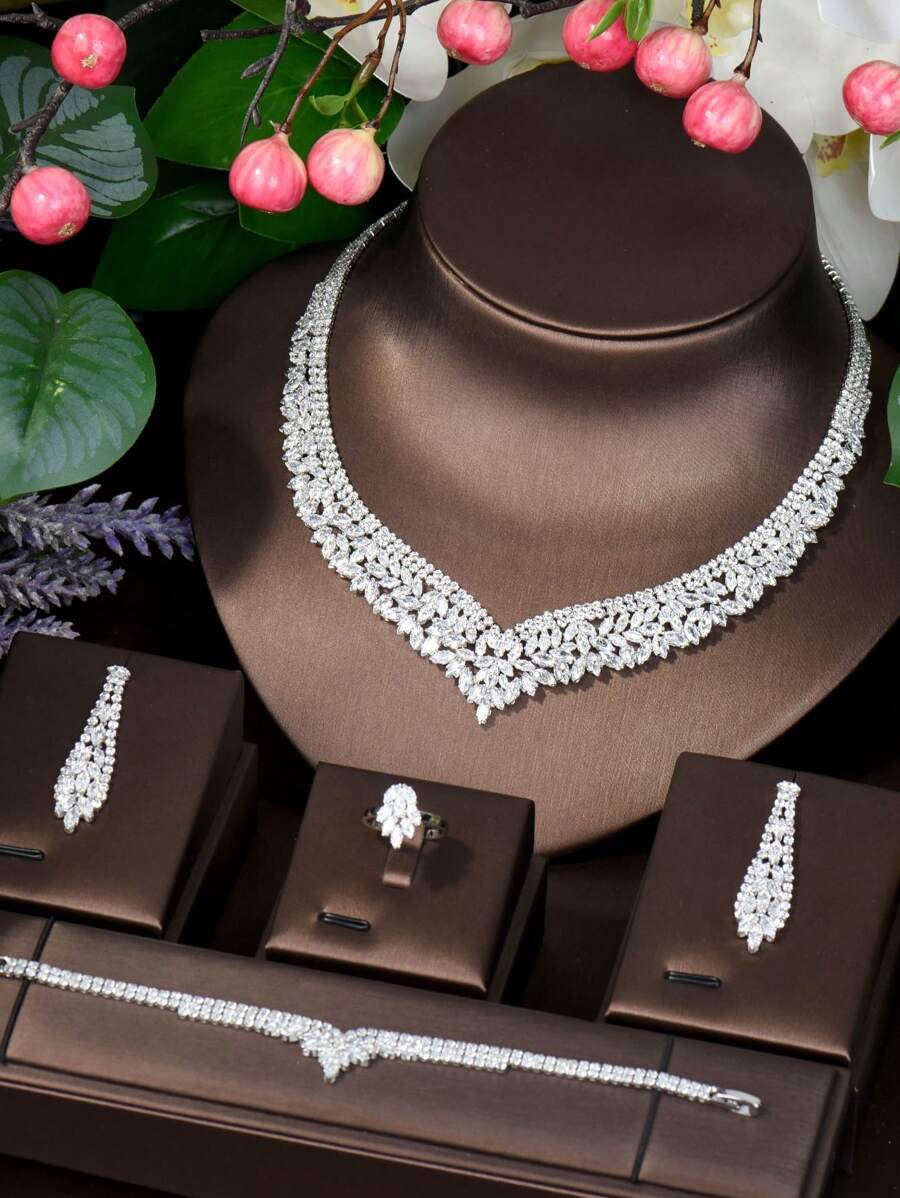 1set Simple Cubic Zirconia Geometric Decorated Jewelry Set Suitable For Ladies' Dating