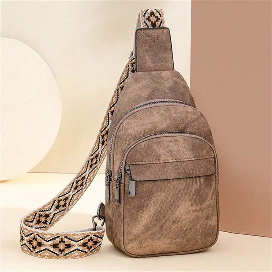 Retro Multi Pockets Chest Bag Soft Pu Leather Crescent Bag Motorcycle Sling Backpack