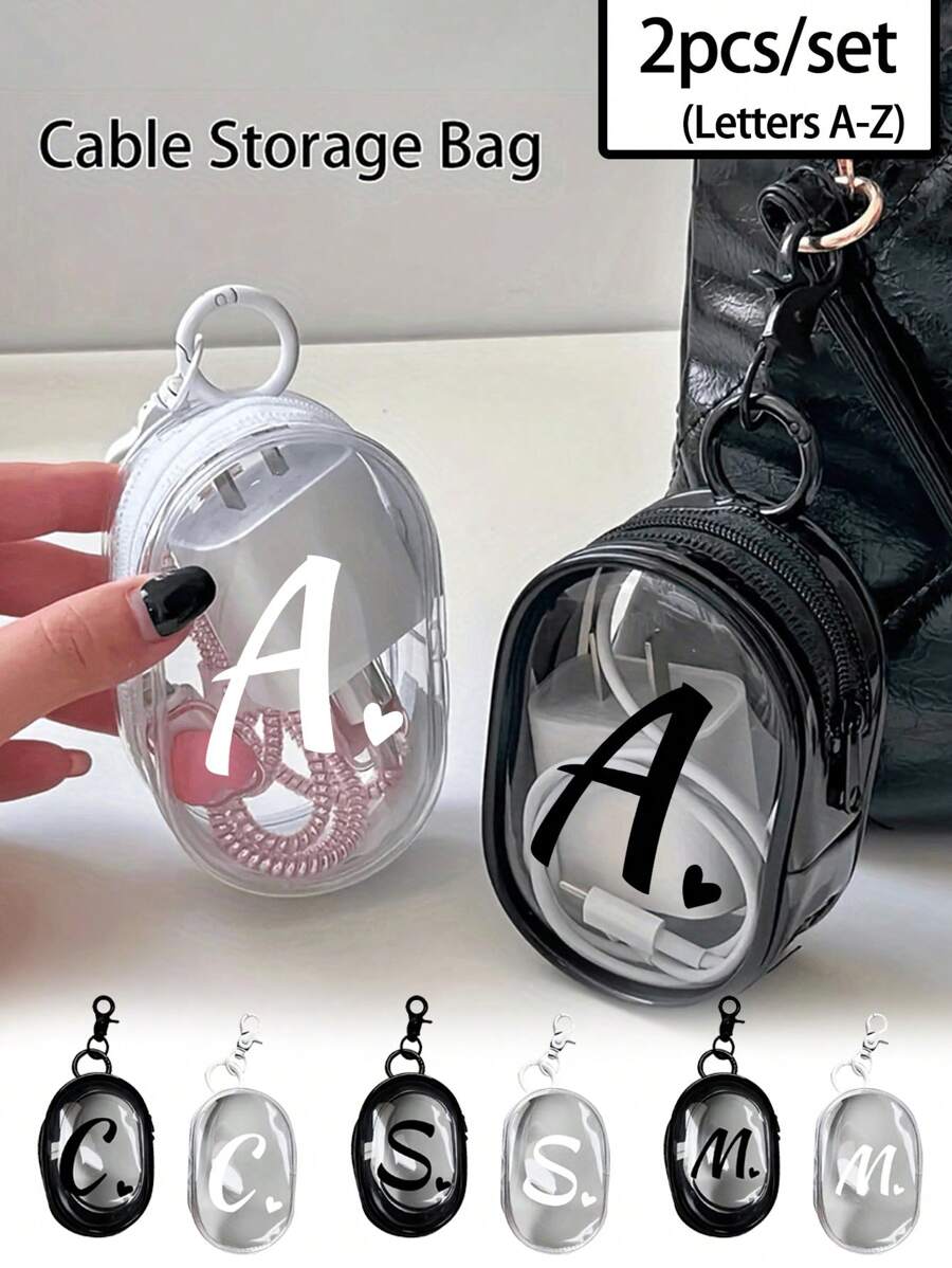 2pcs Portable Mini Transparent Zipper Storage Bags, Letter & Heart Design, Couple Hanging Pouches, Small Multi-Functional Storage Bags For Earphones, Chargers, Keychains, Transparent Travel Accessories, Black & White, Compact & Elegant, Suitable For Small Items, Cables, Bracelets, Cosmetics (1 Black + 1 White) (Zipper Style & Color Random, Ring Style & Size Random), Backpack Accessories, Back To School Supplies