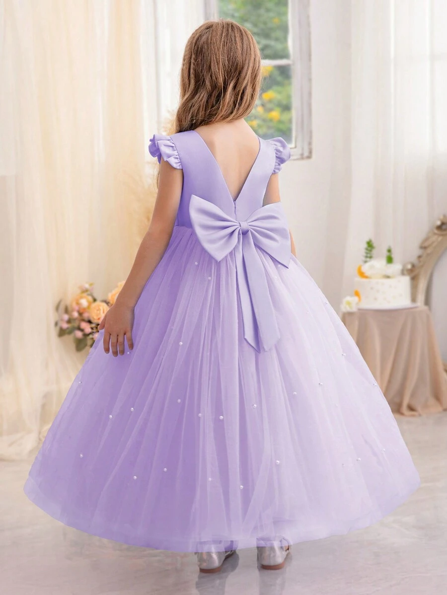 Tween Girl Purple Cap Sleeve Handmade Beaded Bow Christmas Party Elegant Dress, Princess Dress Suitable For Girls Birthday Party, Prom, Graduation, Wedding Bridesmaid, Holiday Celebration