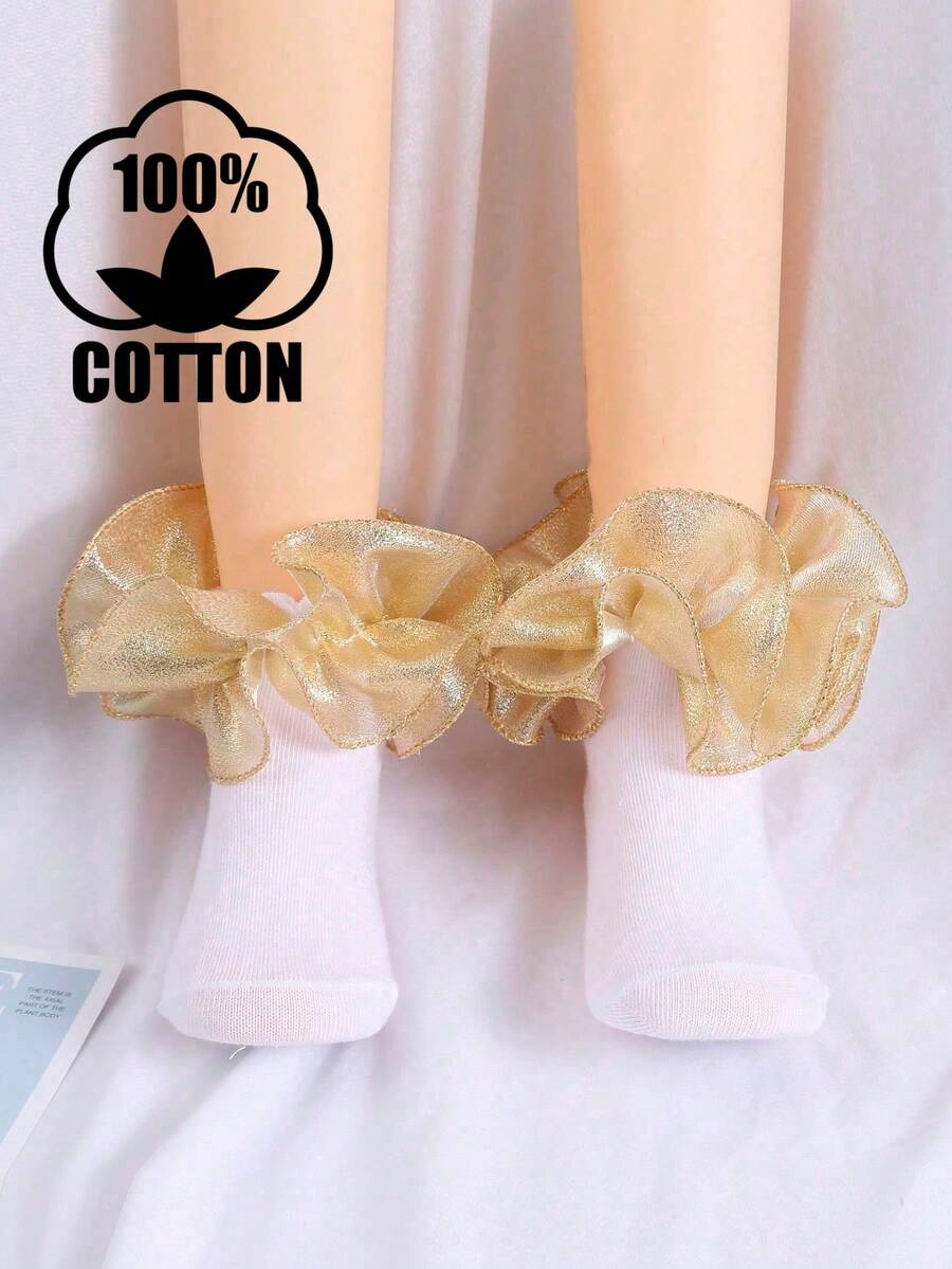 1 Pair Cotton Children Lace Trim Solid Color Short Socks, Suitable For Dance, Princess, Toddler