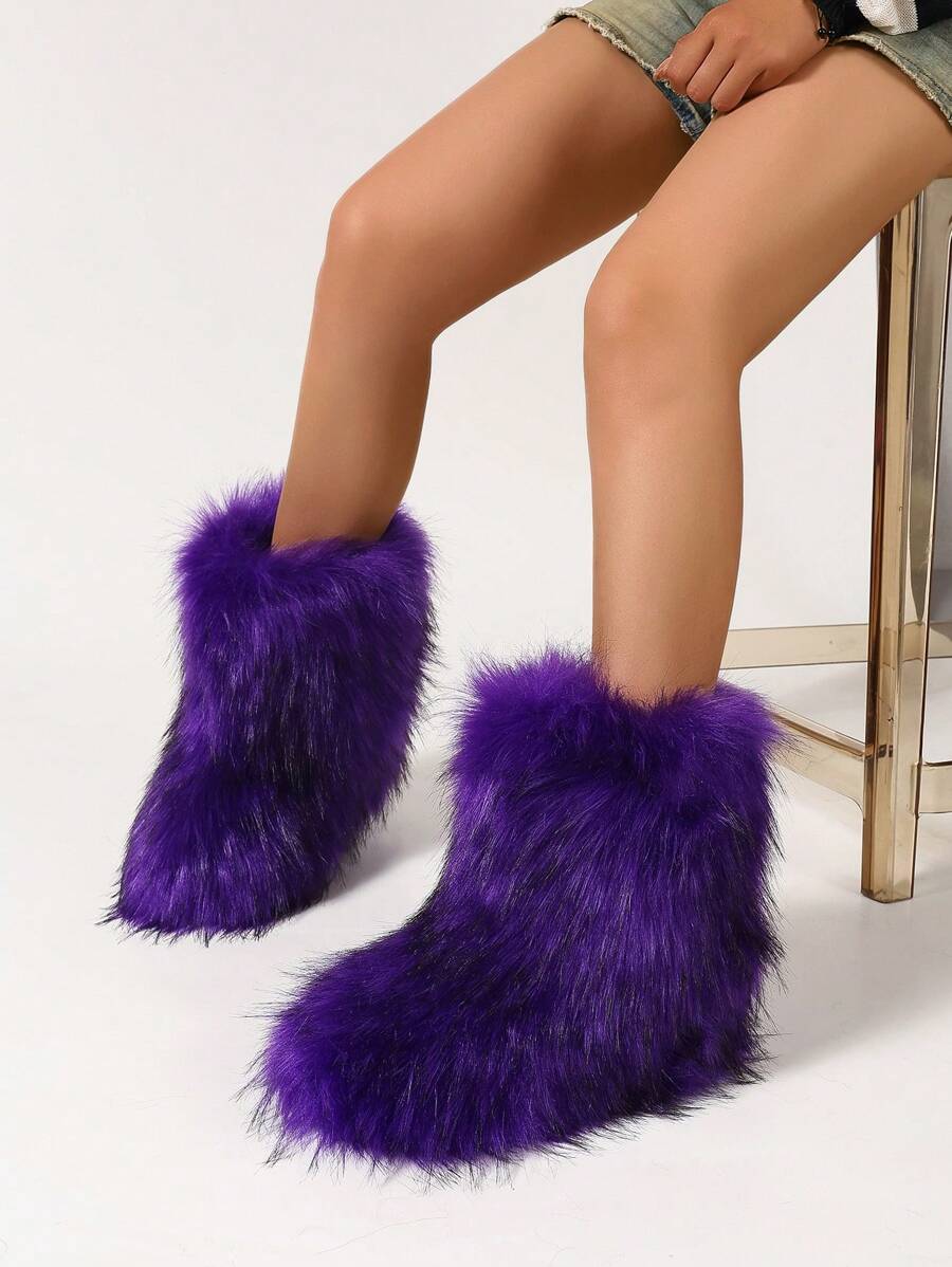 Women's Winter Boots, Fluffy Flat Snow Boots, Purple Boots, Furry Boots