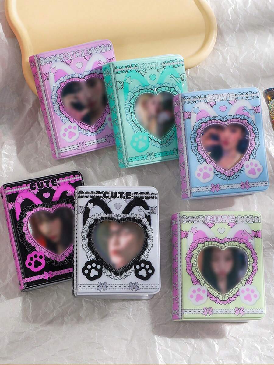 1pc Heart Shaped Hollow Out Photo Album, Girl's Star Chasing Storage Album, Game Card Album