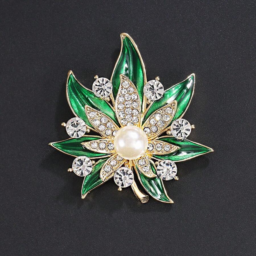 1pc Fashion Women Maple Leaf Brooch Alloy Rhinestone Faux Pearl Pin For Coat, Scarf, Suit, Party, Gift