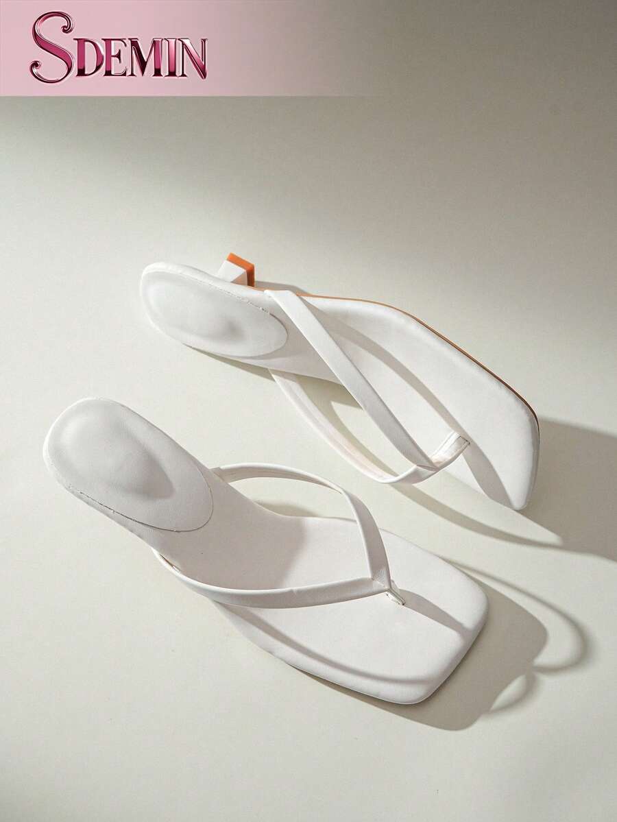SDEMIN Summer New Arrival Women's Solid Color Slippers, Elegant Vacation Shoes, Casual Beach High Heels Sandals, Fashionable Easy-On Heels For Dress