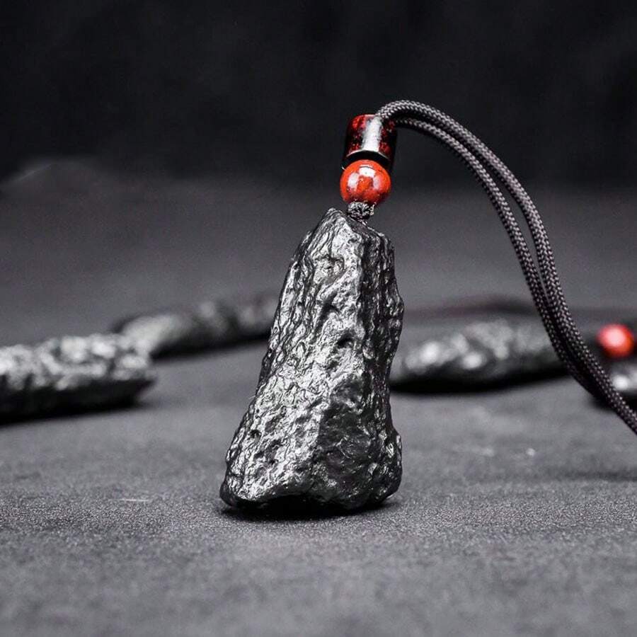 • 1pc Natural Desert Retro Iron Meteorite Pendant, Wishing Stone, Original Stone Wealth Pendant, Guardian Peace Necklace, Natural Gem Pendant, Quartz Crystal Necklace, Couple Necklace, Gift For Her, Suitable For Holiday Party Gifts, Quartz Crystal Gifts. - View 2