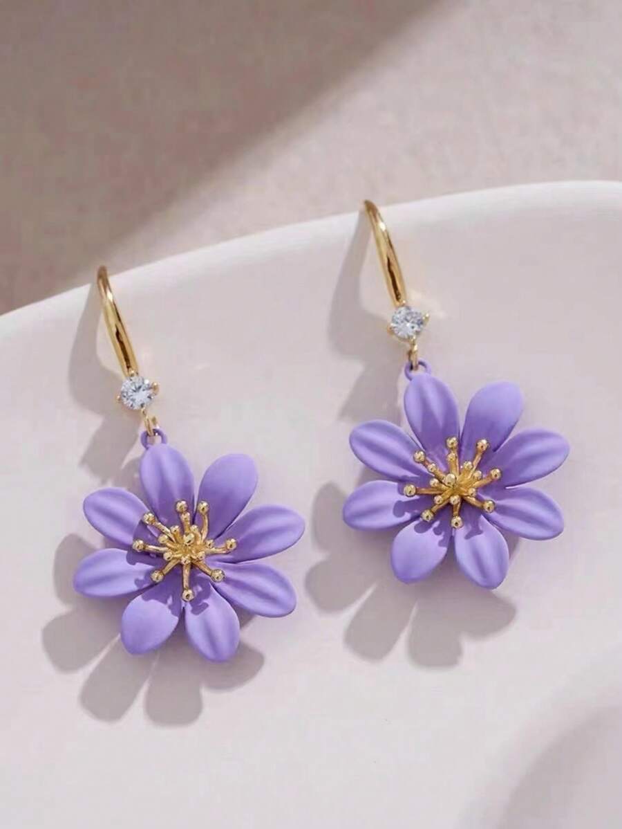 LUMIDIYA 1Pair Of Purple Chrysanthemum Flower Pendant Earrings, Multifunctional Minimalist Jewelry, Summer Earrings Creative Gift For Women And Girls