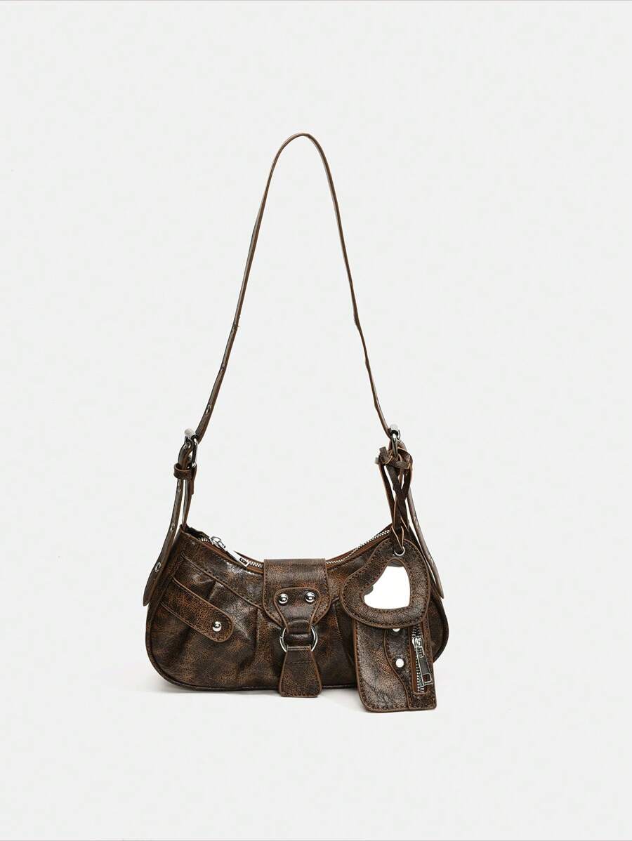 Dedoo 1pc Y2K Gothic Retro Rivet Decor Square Accent Women's Shoulder Bag, Suitable For Daily Outings, Niche Design, Steampunk, Gothic Style, Women's Bag, Cool Girl Street Style, Perfect For Music Festivals, Concerts, Rock Style, Y2K Bag, 2000s Fashion Style, Gothic Punk Style Women Bag