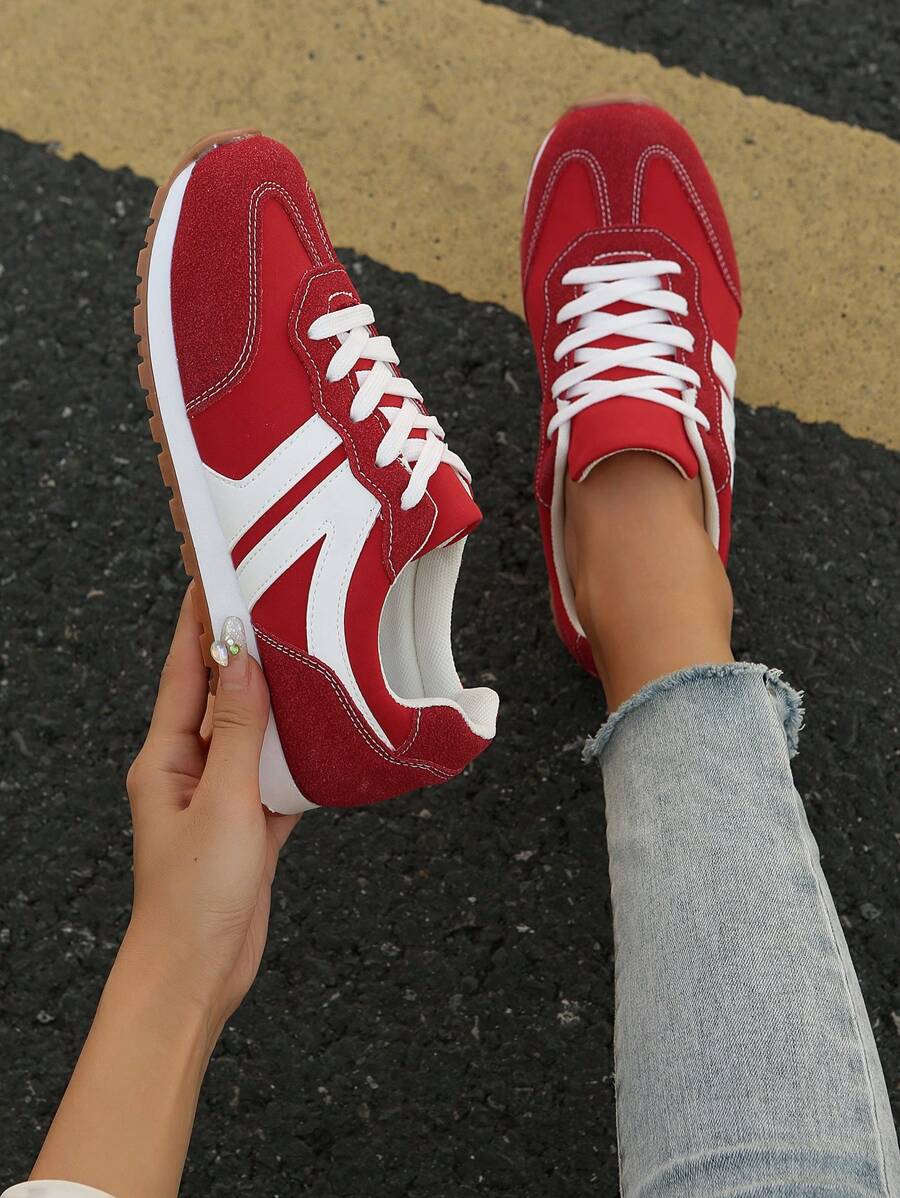 2025 Autumn Women's Suede Patchwork Lace-Up Front Thick-Soled Athletic Sneakers, New Lightweight Chunky Sole Casual Shoes, Outdoor Sports Style Student Shoes For Fall