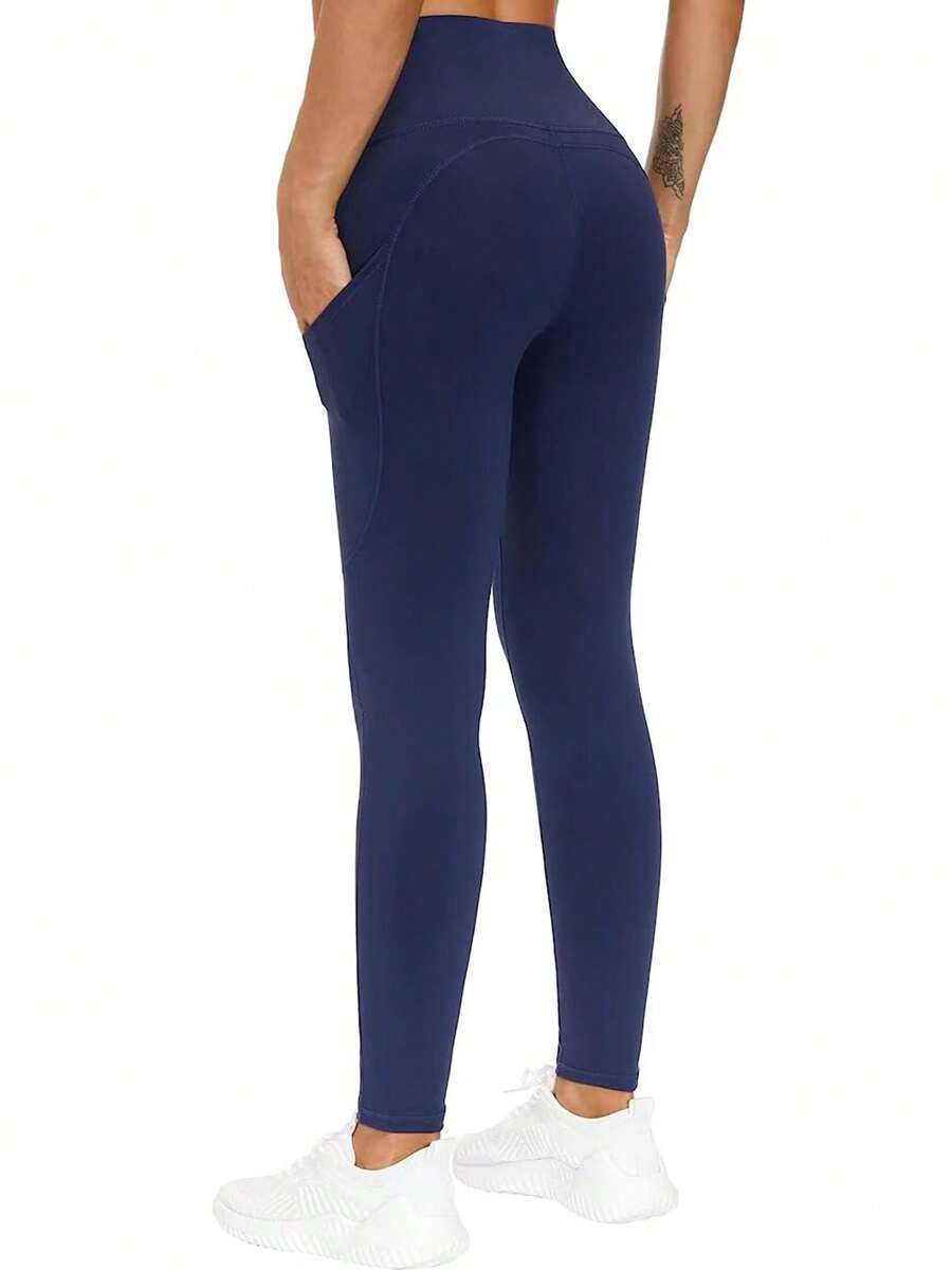 High Waist Yoga Pants With Pockets, Tummy Control Workout Running Yoga Leggings For Women