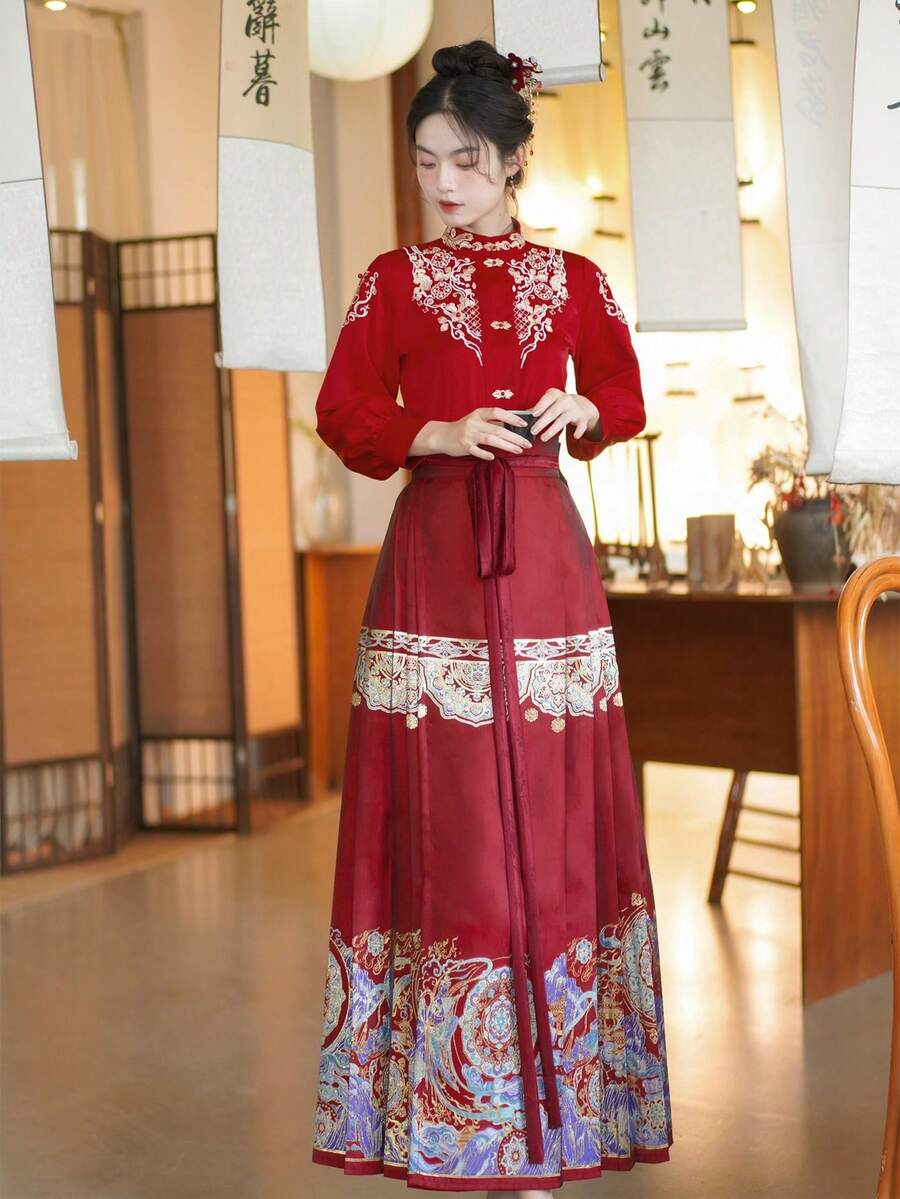 Spring Chinese Style Vintage Red Embroidery Beading Toast Clothes For Chinese Wedding, Chinese Newyear, Daily, Street, Commuting, Home And Other Occasions To Wear Hanfu Tops