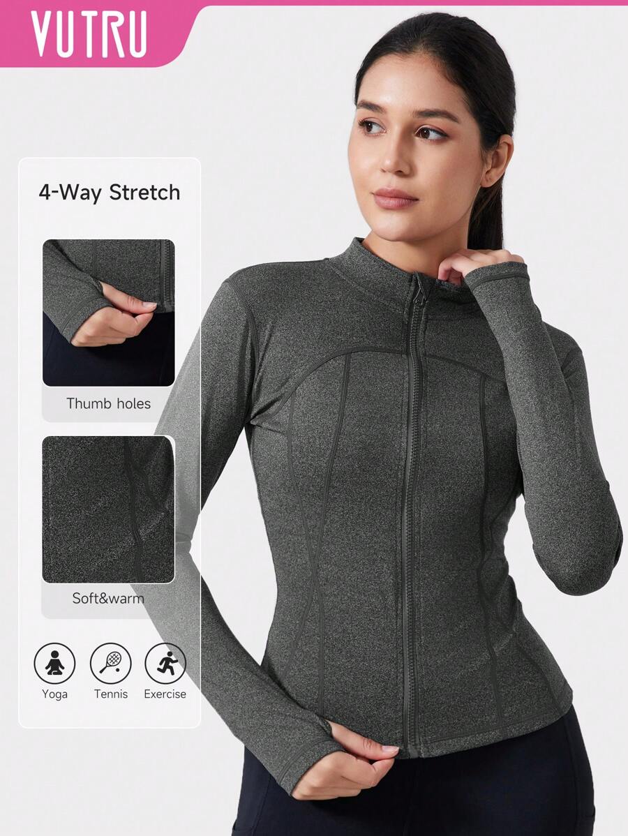 1pc Women Sports Jacket With Thumb Holes, Fitted For Running And Yoga, VUTRU Brand