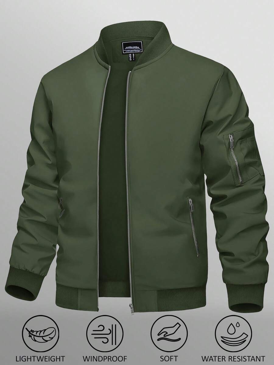 KEFITEVD Men's Thin Bomber Jacket Full-Zip Spring Fall Casual Sportswear Lightweight Coat Baseball Golf Outdoor Sports Waterproof Coat