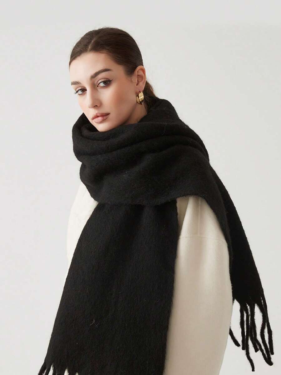 1pc High Quality Imitation Wool Solid Color Comfortable Neckwarmer, Warm Wool Blend Scarf Shawl