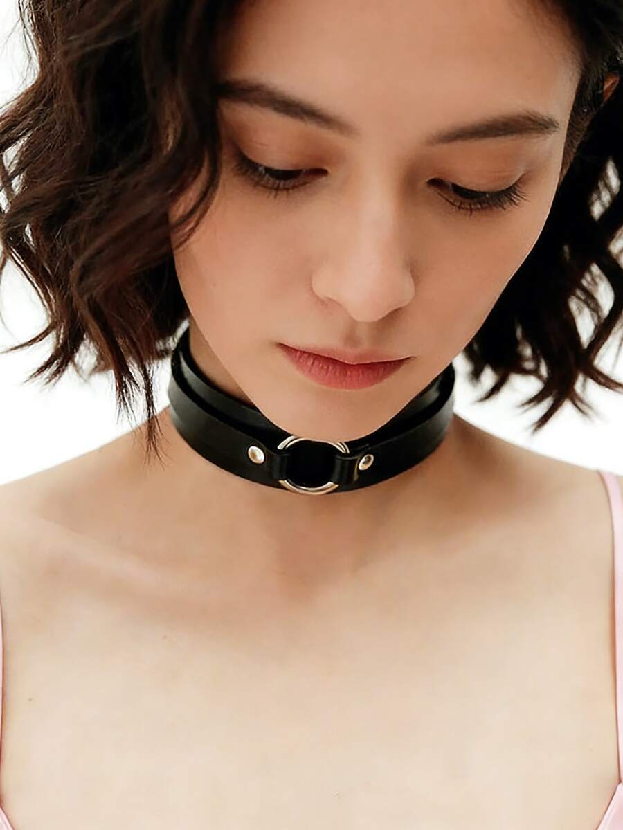 1pc Leather Collar, O-Ring Choker, Gothic Choker, Fetish Collar, Punk Choker