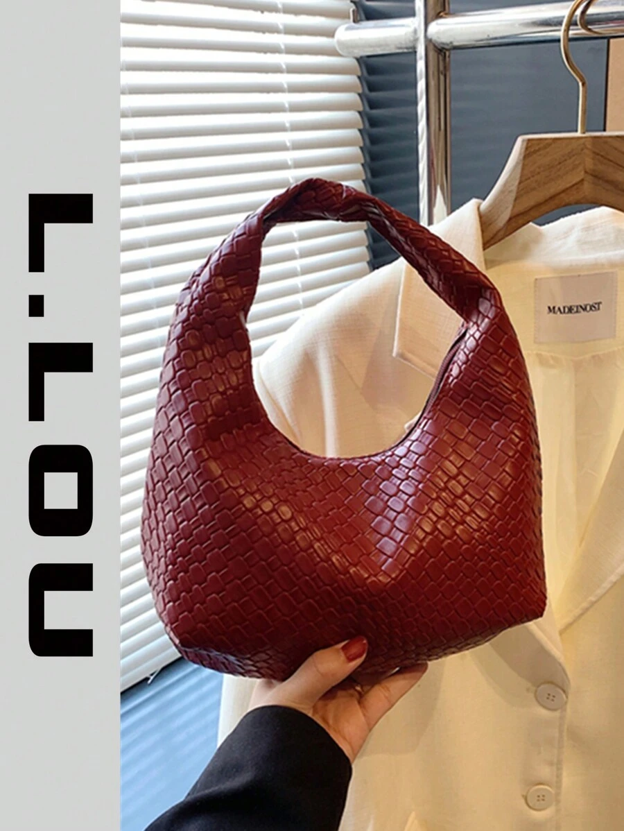 Fashionable Crocheted Crescentic Handbag With Textured Pattern, Solid Color Casual Tote Bag, Shoulder Crossbody Bag, Versatile For Work & Commute