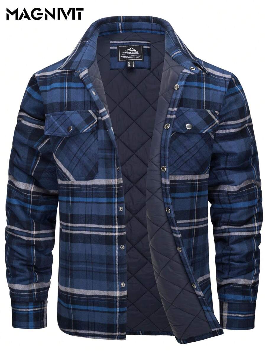 Cotrasen Men's Cotton Flannel Plaid Jacket Winter Warm Quited Lined Shacket Windproof Outwears With 5 Pockets