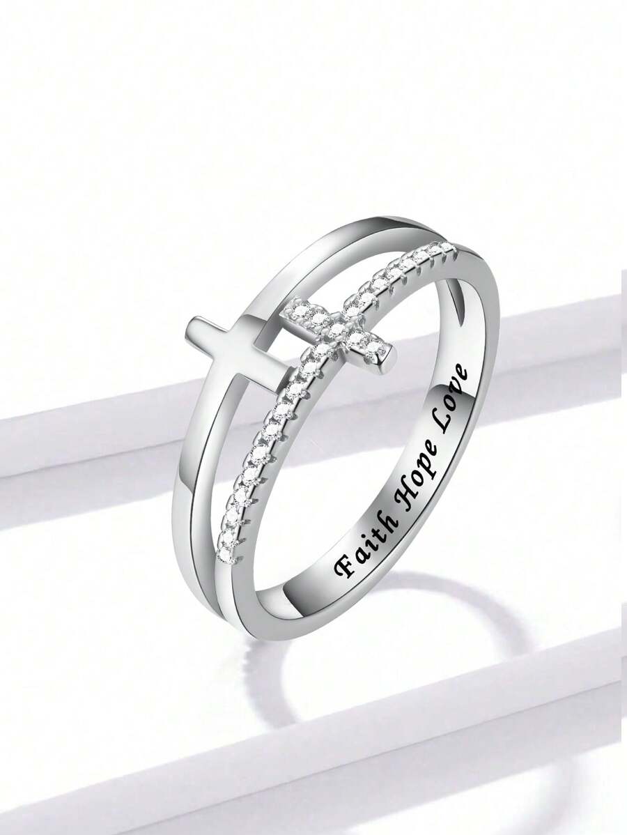 ESBERRY 1pc S925 Sterling Silver Double Cross Rings Thumb Rings For Women Silver Rings Fine Jewelry Gift For Girls