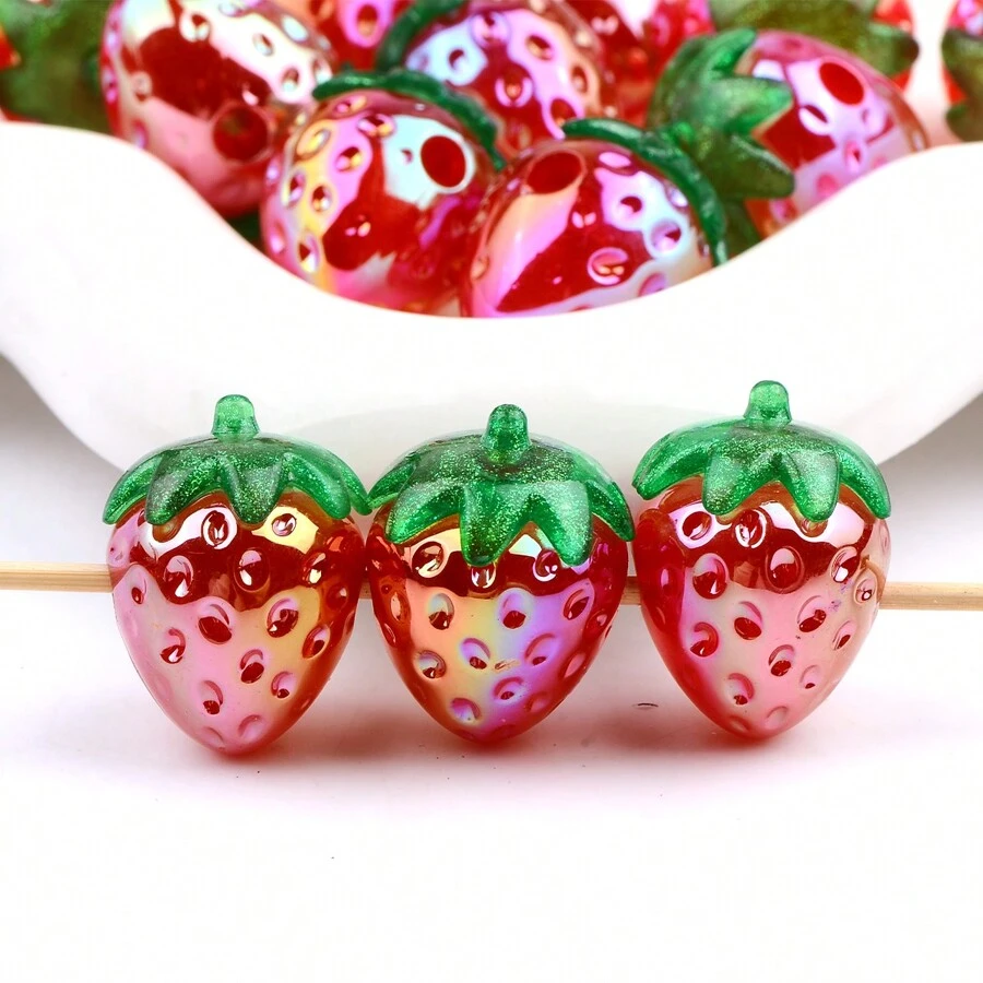 10pcs Cross Hole Red Jelly Strawberry Acrylic Beads For Jewelry Making Diy Loose Spacer Beads Bracelet Ornaments Key Chain