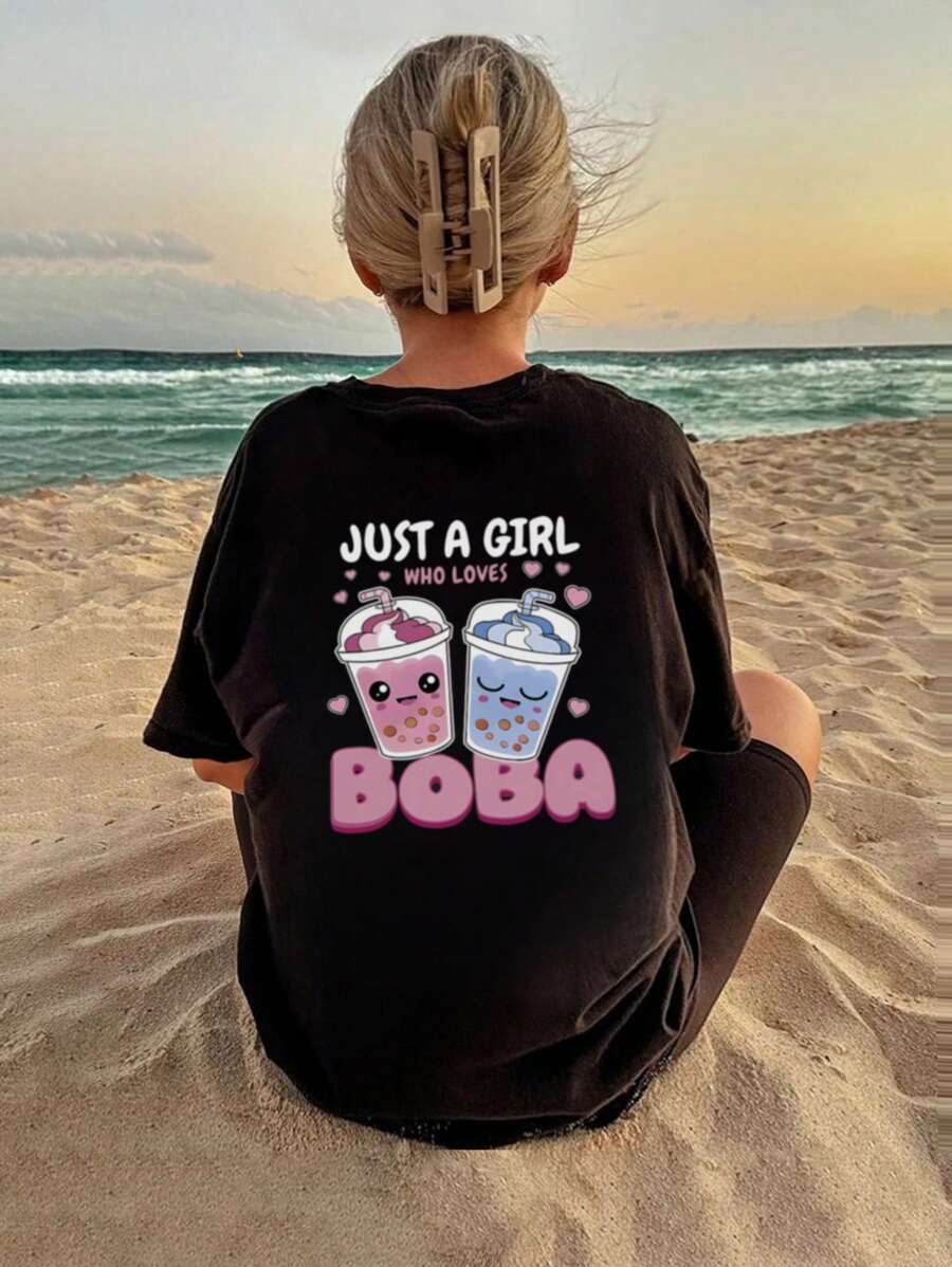 1pc Girls Casual Pearl Milk Tea Graphic Print Crew Neck Short Sleeve T-Shirt, Summer Student Youth Apparel - Artistic Style Tee Inspiring Kids' Imagination And Self-Expression! Valentine's Day