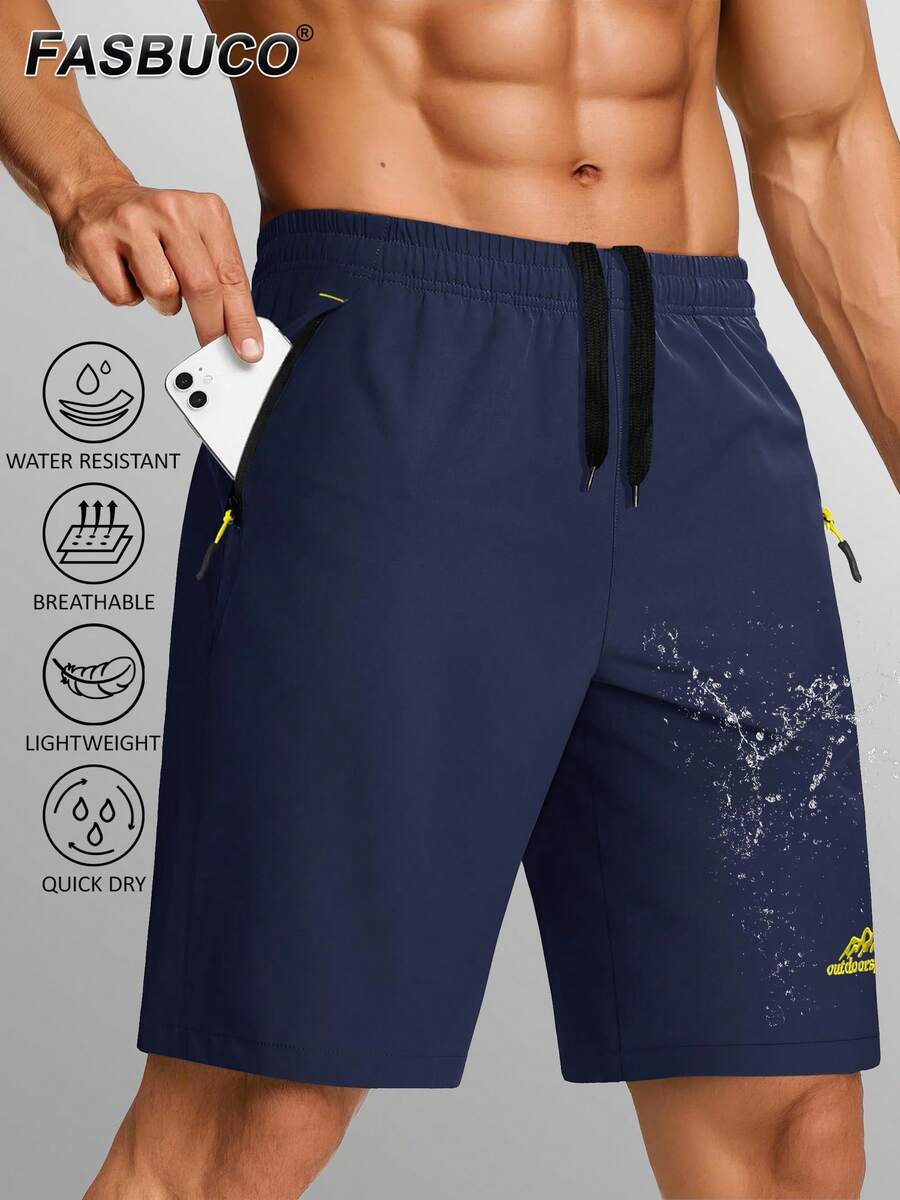 FASBUCO Men's Hiking Shorts 9" Quick Dry Athletic Shorts With Zipper Pockets For Gym, Workout, Basketball, Running