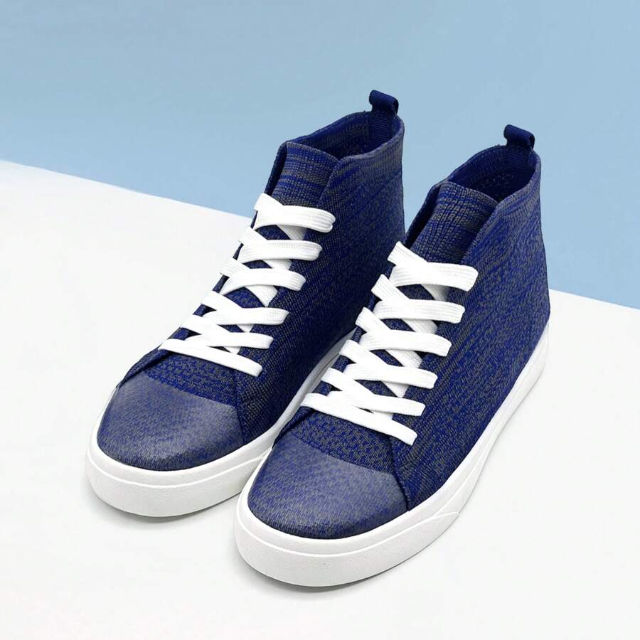 Womens High Top Trainers Unisex Mens Knitted Breathable Mesh Fashion Sneakers Lace Up Lightweight Casual Tennis Running Walking Shoes For Women