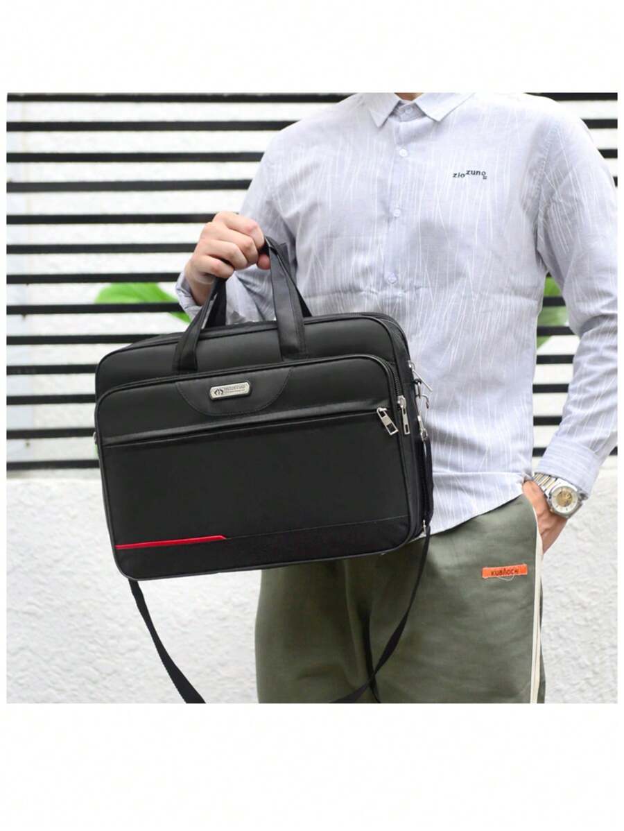 1pc Fashion Multi-Layer Men's Large Capacity Handbag Briefcase Shoulder Bag Messenger Bag Black Classic Laptop Bag Business Work Commute Office Supplies Dad's Gift Father's Day Back To School College Dorm Multipurpose Laptop Bags