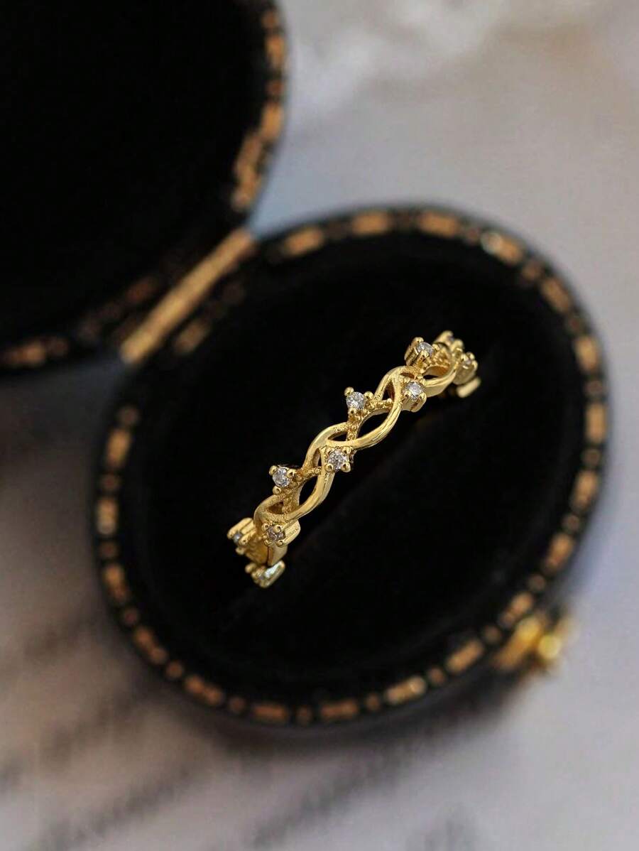1pc 925 Sterling Silver Vintage Elegant Hollow Leaf Ring, Inlaid With Cubic Zirconia, Exquisite Jewelry Gift For Women, Party/Birthday Gift, Daily Wear