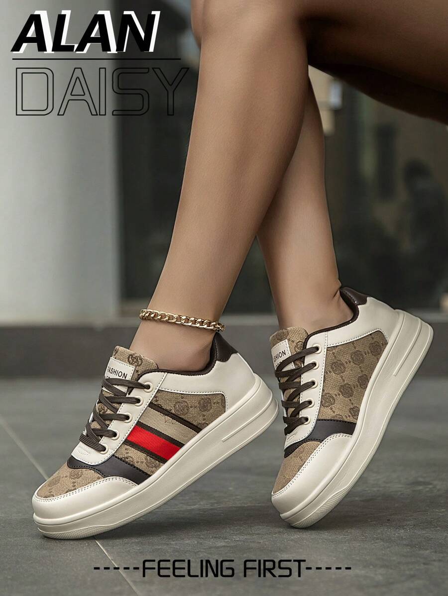 Women's Fashion Color Block Lace Up Platform Sneakers, Comfortable Daily Light-Weight Versatile Student Outdoor Couple Sports Shoes