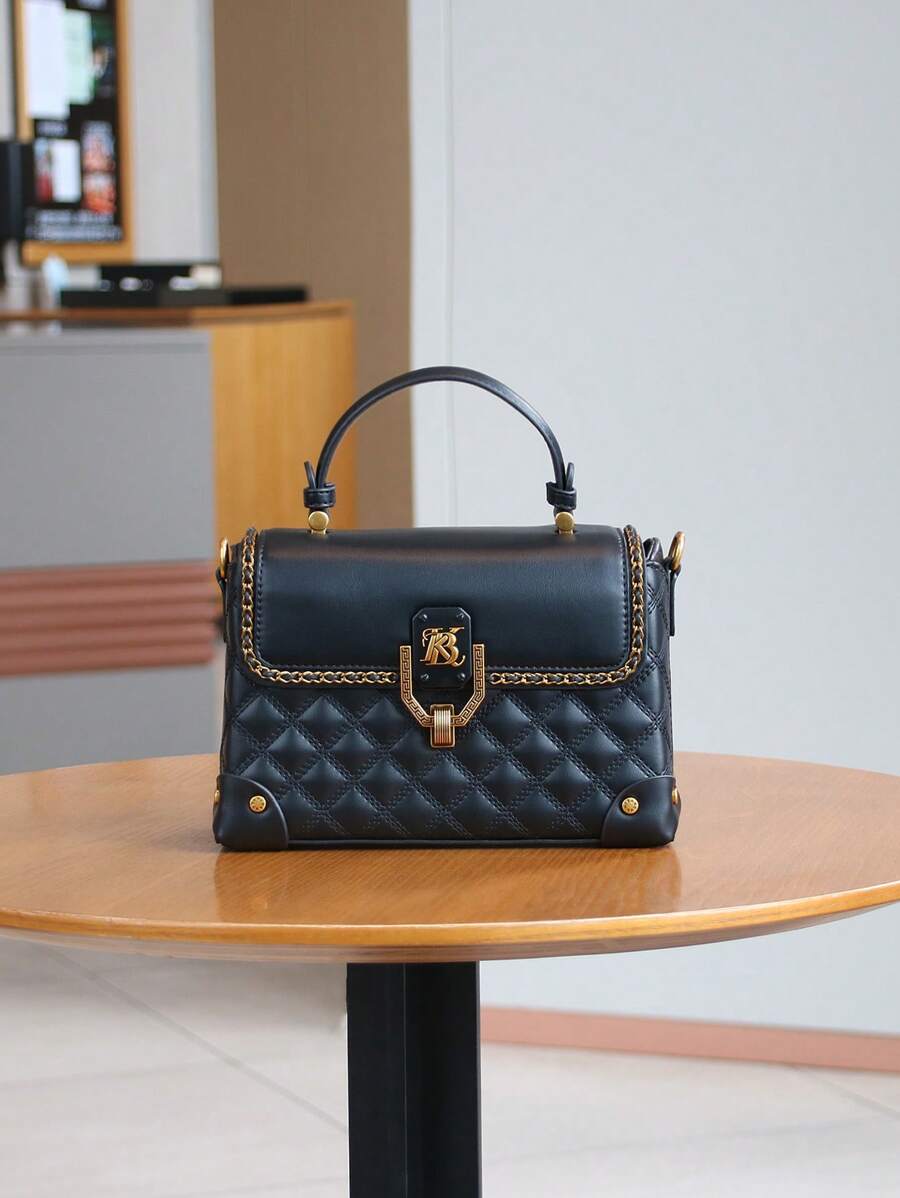 Fashionable 2025 Women's Bag, Chic & Versatile Commuter Ladies' Rhombus Embroidered Handbag With Clasp, High-End Boxy Design, Unique Shoulder/Crossbody Bag