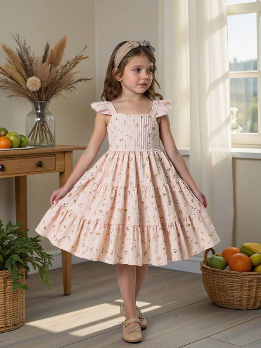 Vintaside Kids Girls' Stylish Korean-Style Ditsy Floral Suspender Dress, Suitable For Beach Vacation, Travel And Photography, Giving A Fashionable And Fresh Feeling, A Must-Have Summer Dress