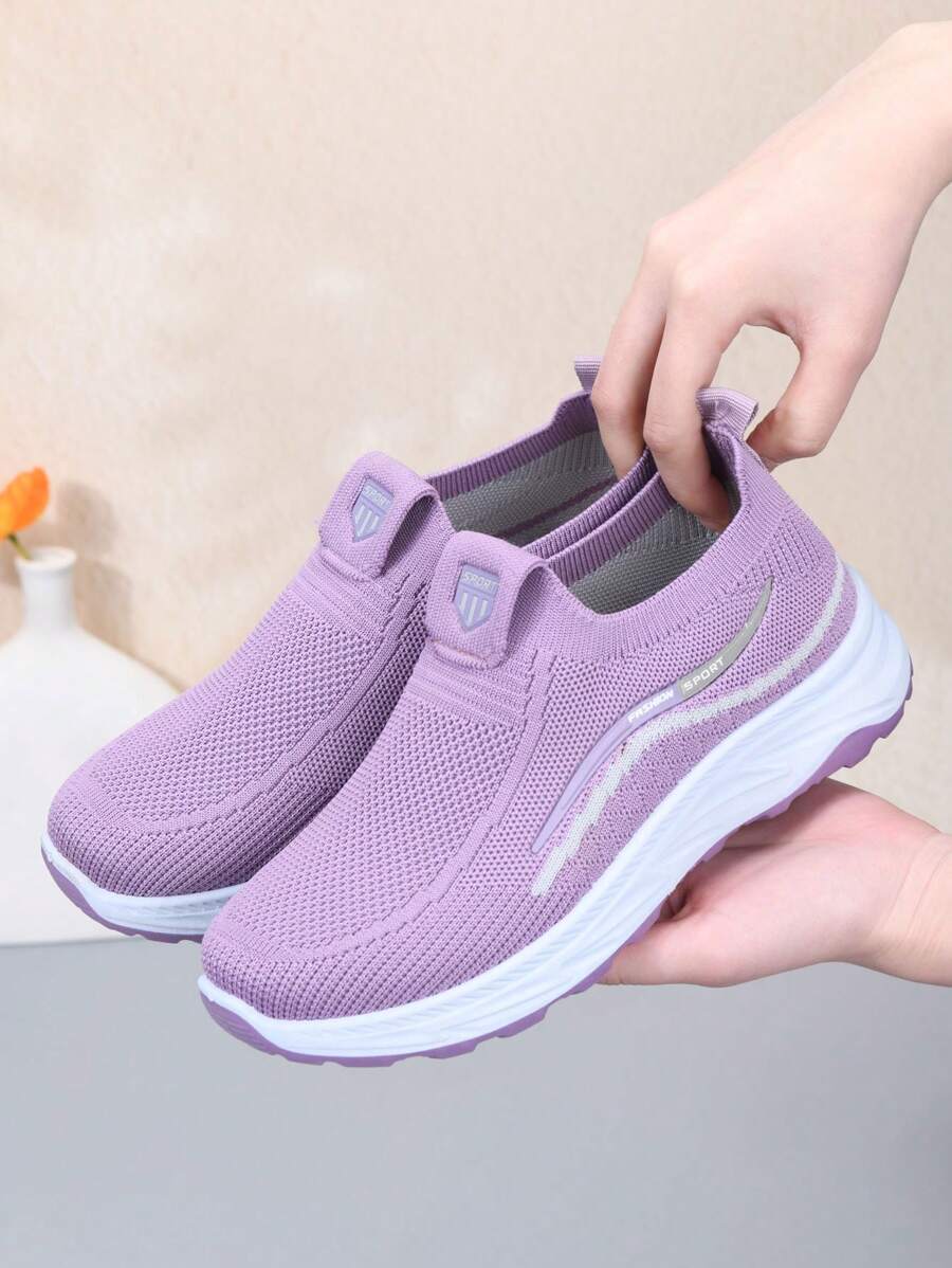 Women's Breathable Mesh Casual Sport Shoes, Slip-On, Anti-Slip Soft Sole Comfortable Mother Shoes, Round Toe Loose Casual Shoes, Elastic Cuff, For Daily Walking, Spring/Summer