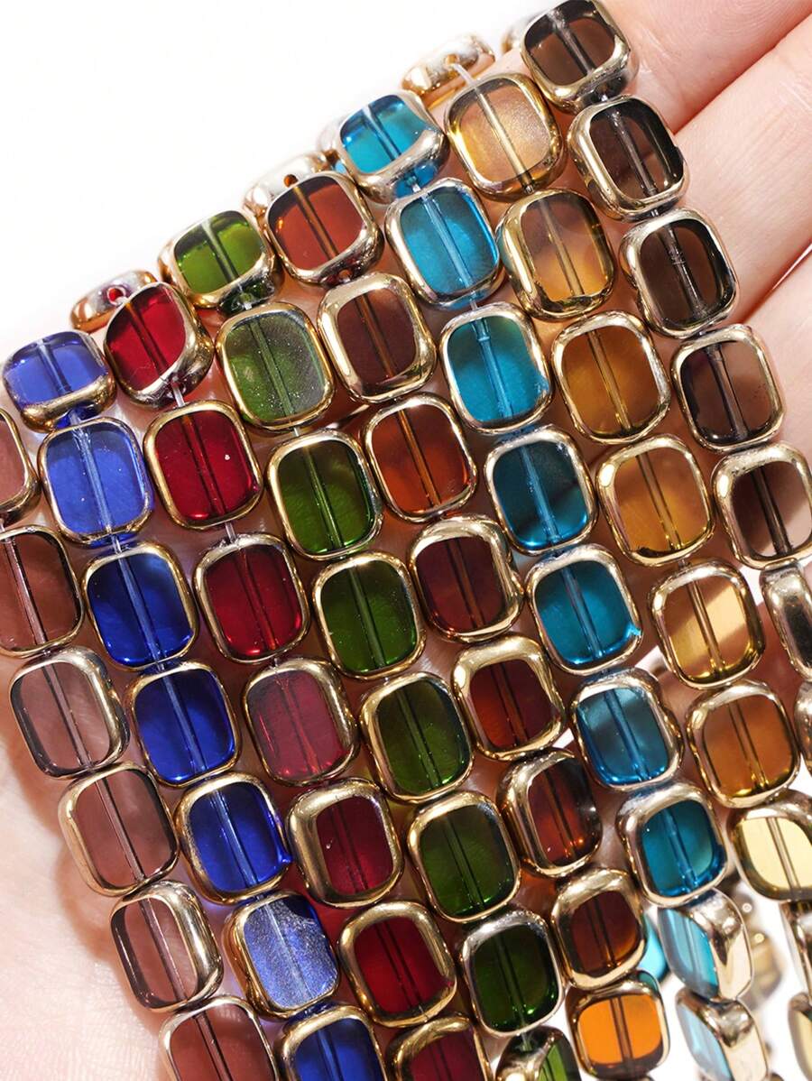 10/50pcs 10x12mm Oval Golden Edged Transparent Glass Beads Mixed Color DIY Loose Beads Handmade Bracelet Earrings Jewelry Materials -Jewelry Making Accessories