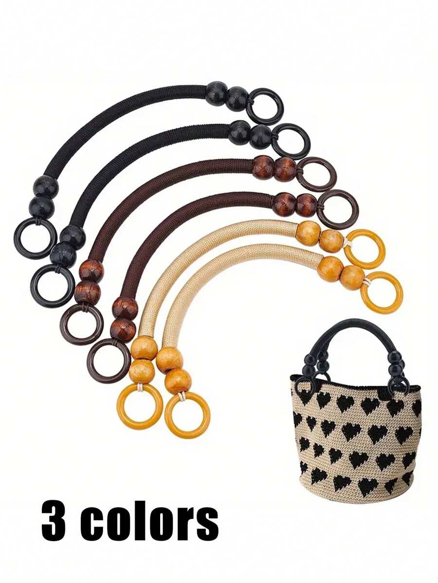 14.57 Inch Fashionable Rustic Wooden Bead Strap - U-Shaped Nylon Shoulder Strap Handle, Suitable For Crochet Bags, Tote Bags And Baskets, Multi-Color, Versatile DIY Bag Accessory