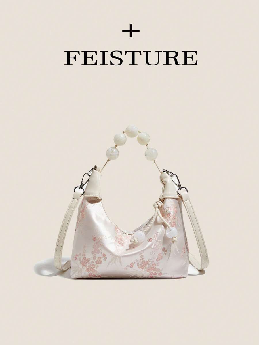 1pc Solid Color Nylon Fabric Chinese Style Embroidered Tote Bag, Suitable For Shopping, Dating, Women's Gift, Suitable For Office Ladies, Ideal For Office, College, Work, Commuting