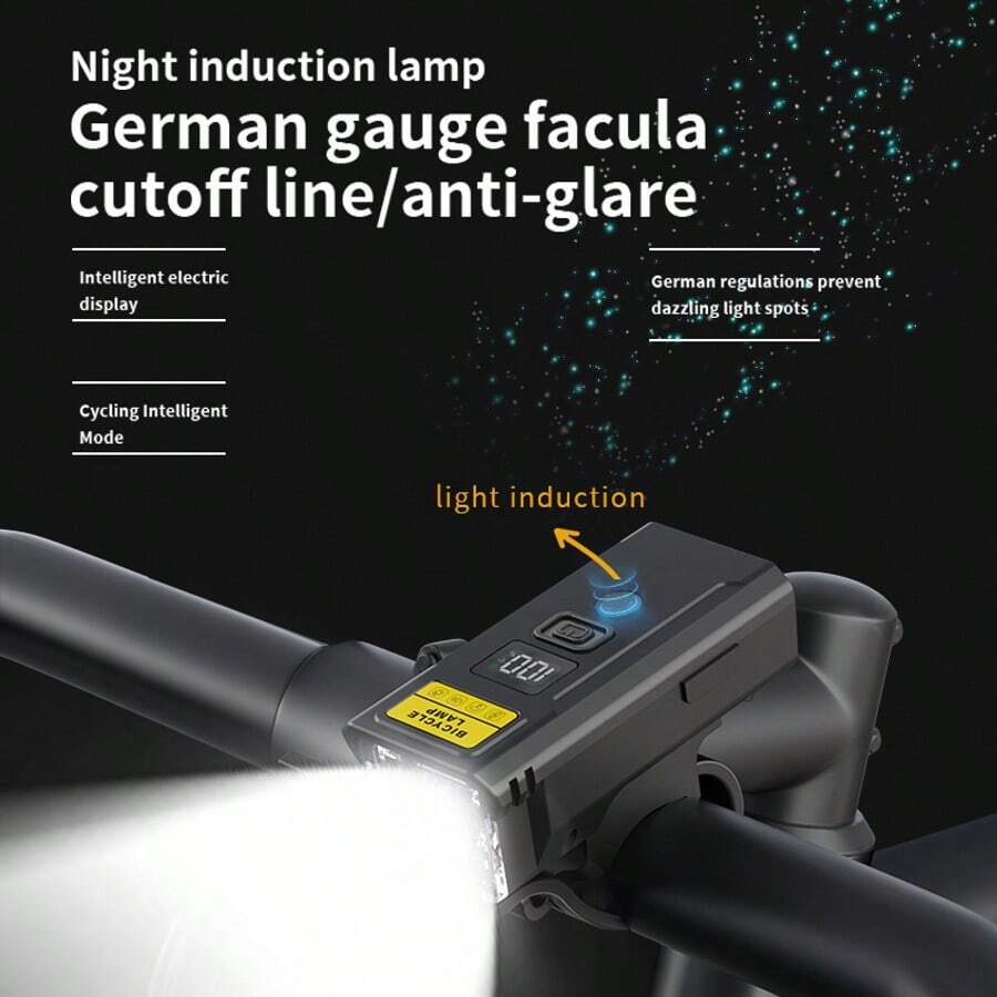 1pc Bicycle Front Lamp Smart Light Sensor Cycling Safety Lamp Remote Control Bike Headlight Flashlight For Night Riding
