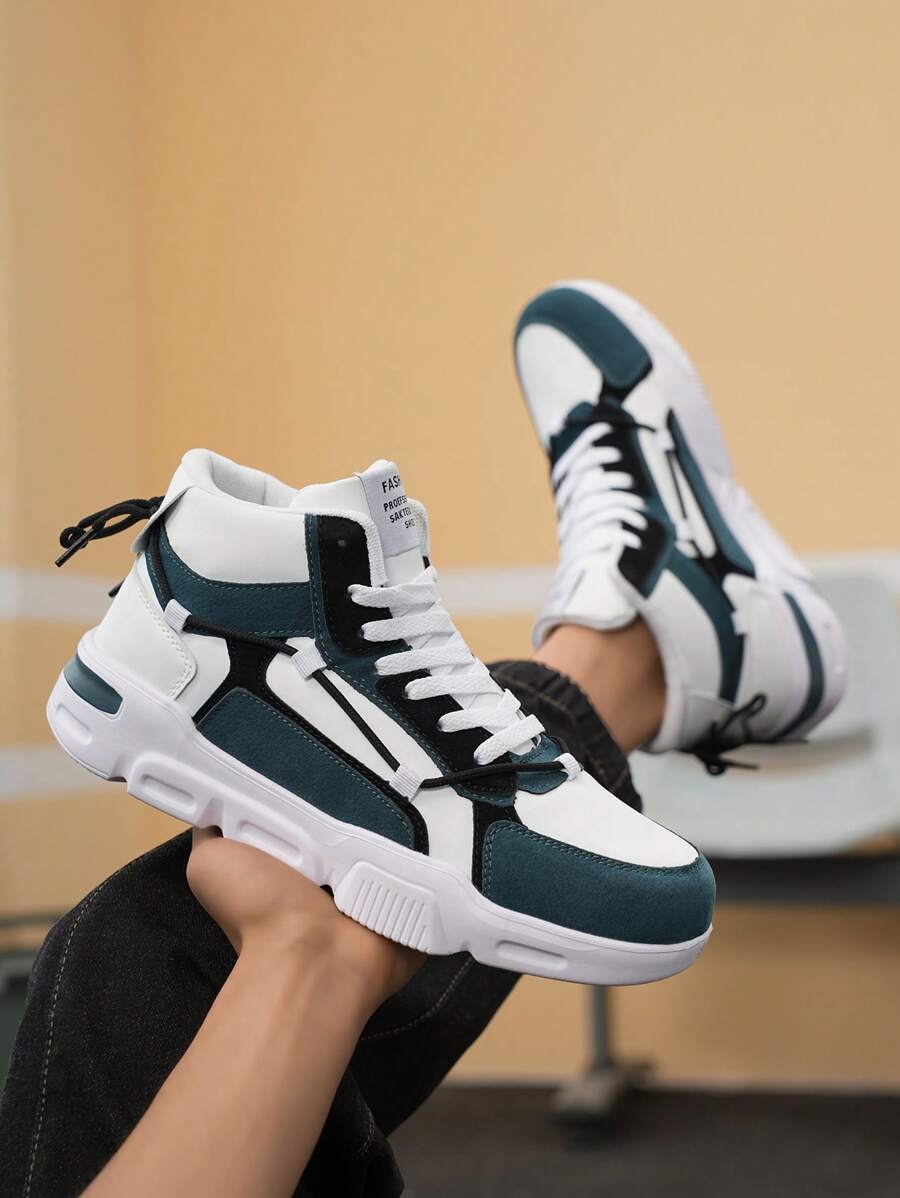 High Top Casual Sneakers For Men, Personalized Color Blocking Letter Print Dual Shoelace Design, Fashion Street Style, Comfortable Walking, Non-Slip Skate Shoes