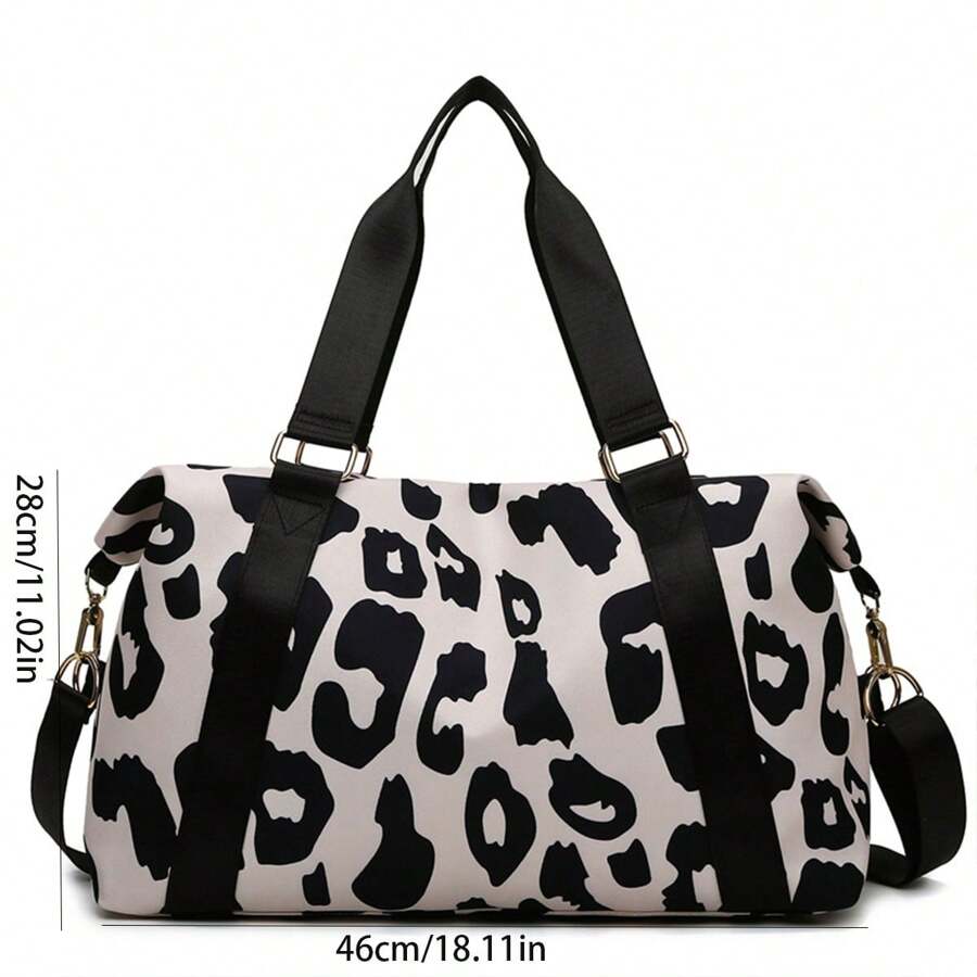 1pc Large Capacity Cow Pattern Oxford Cloth Handbag,Women's Waterproof Tote Shoulder Bag With Wet & Dry Separation, Travel Bag