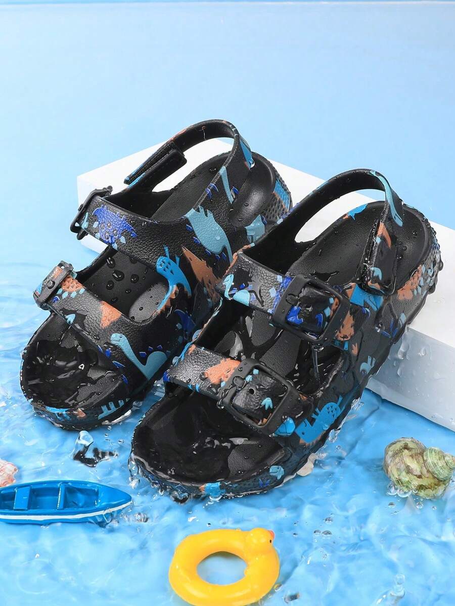 Kids' Beach Slippers, Summer Slip-On Sandals, Girls' Open Toe Sandals, Breathable Water Shoes, Printed, Hook And Loop, Outdoor Shoes