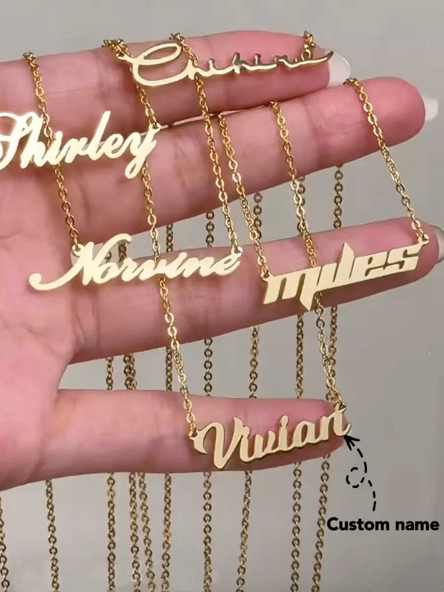 1pc Customized Name Women Necklace, Fashionable Stainless Steel Gold Nameplate Charm Chain Necklace, Personalized Jewelry Suitable For Birthday, Anniversary, Holiday Gifts For Friends, Lover, Family
