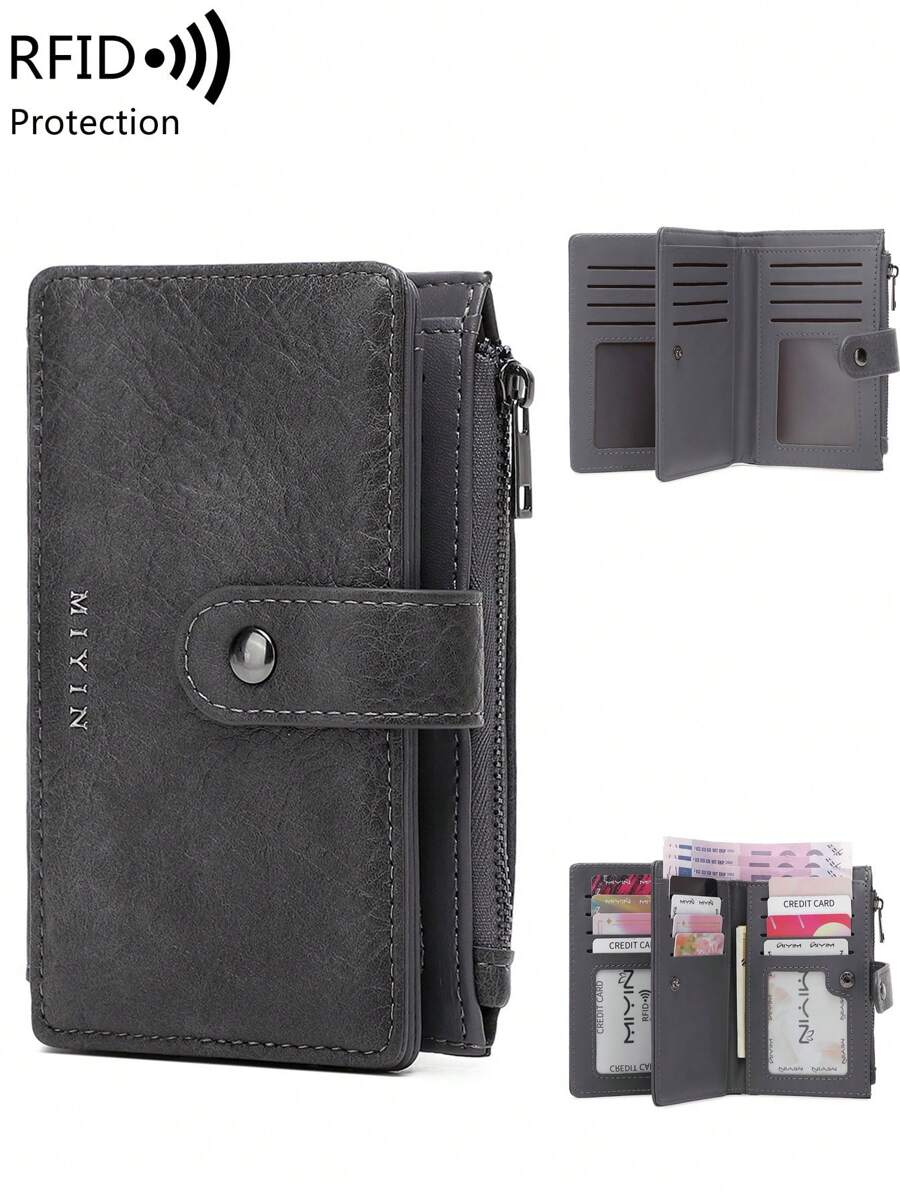 MIYIN Vintage RFID Blocking Multi-Functional Multi-Card Slot Short Wallet, With Zipper And ID Window, Can Hold Credit Cards, Cash, Letters, Suitable For Daily Carry, Vintage Casual Style, Can Hold Coins, Credit Cards, ID, Cash, Letters. Tri-Fold Design, Zipper Wallet, Christmas Gift, Thanksgiving Gift, Birthday Gift, Anniversary Gift, Men's Wallet, Handbag, Long Wallet.