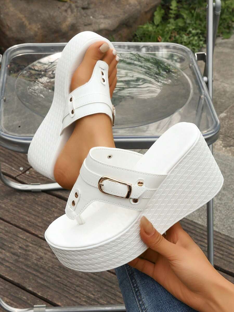 Women's Comfortable Casual Fashion Platform Flip Flops With Side Buckle Decoration, Thick Sole, Suitable For Daily Wear, Vacation, Goes Well With Dresses And Pants, Lightweight And Elegant